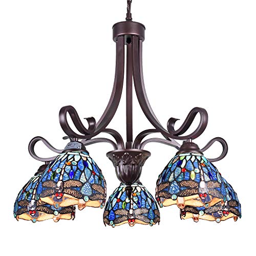 price review Capulina Tiffany Chandeliers 5-Light x7Width Stained Glass Chandeliers Vintage Style for Dining Room Foyer Kitchen